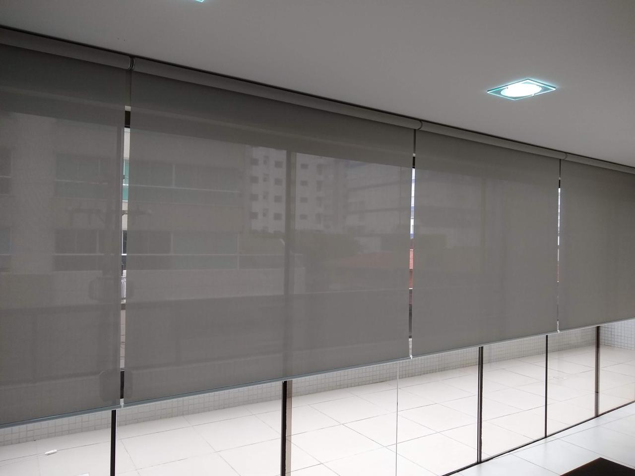 filtro solar composto por uma combinação de PVC + fibra de vidro. Este elemento consegue filtrar os raios do sol que entram no ambiente, sem impedir a visibilidade